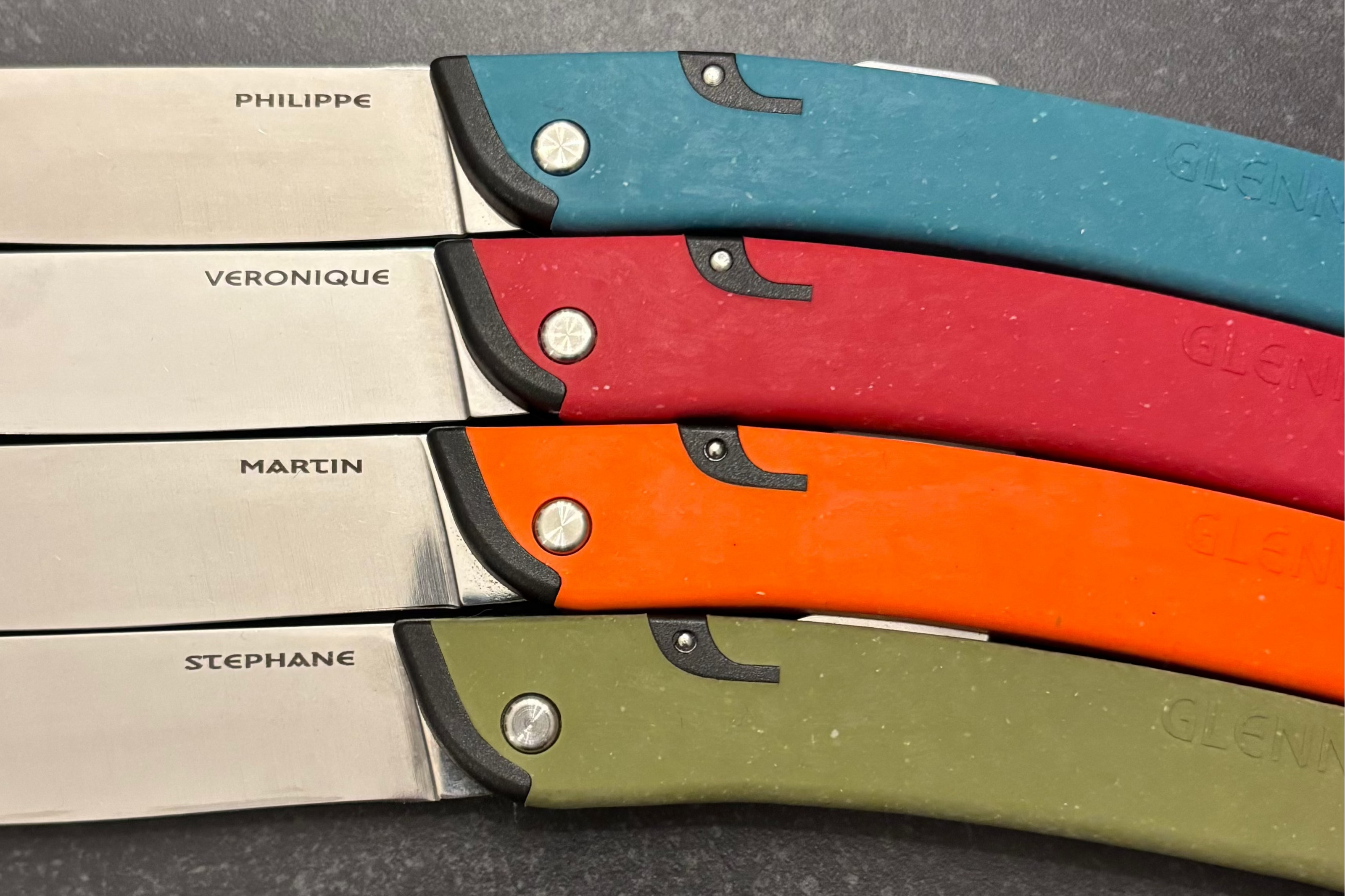 Le manche du Glenn est fabriqué avec des filets de pêche recyclés.Chaque Glenn est unique et numéroté sous la forme de l’immatriculation d’un bateau qui indique le port d’origine des filets utilisés pour sa fabrication.